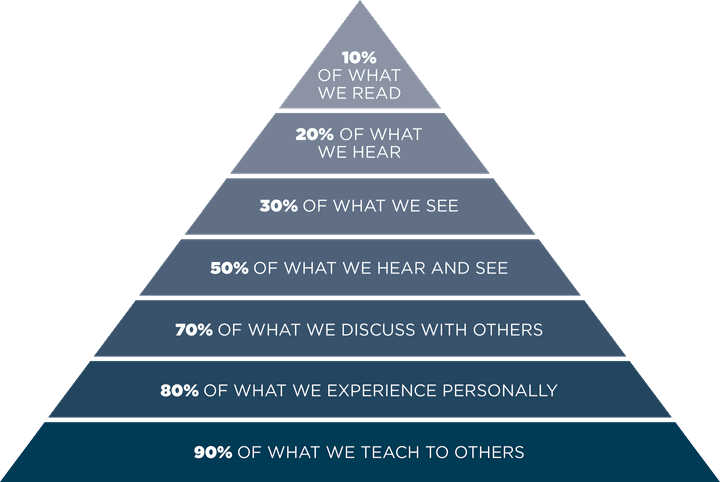 - Importance: Using visual tools is a crucial way to help everyone align on the main points, plans, gaps, risks, and possible paths forward. It’s through this experimentation that you learn your stakeholder’s learning styles. It’s a little like the game we play as children called broken telephone, where each time something was said from one person to the next, the message could change minutely or even drastically. By the time it got to the last person, the message was often unrecognizable. According to Edgar Dale's Cone of Experience, the percentage of information we retain can be summarized by the wisdom that people remember. (Thalheimer, 2015)