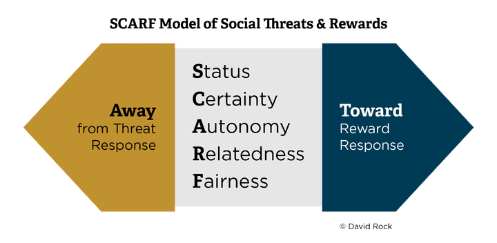 - Decision-making, problem-solving, and partnering with others are incapacitated by a significant threat response to SCARF aspects